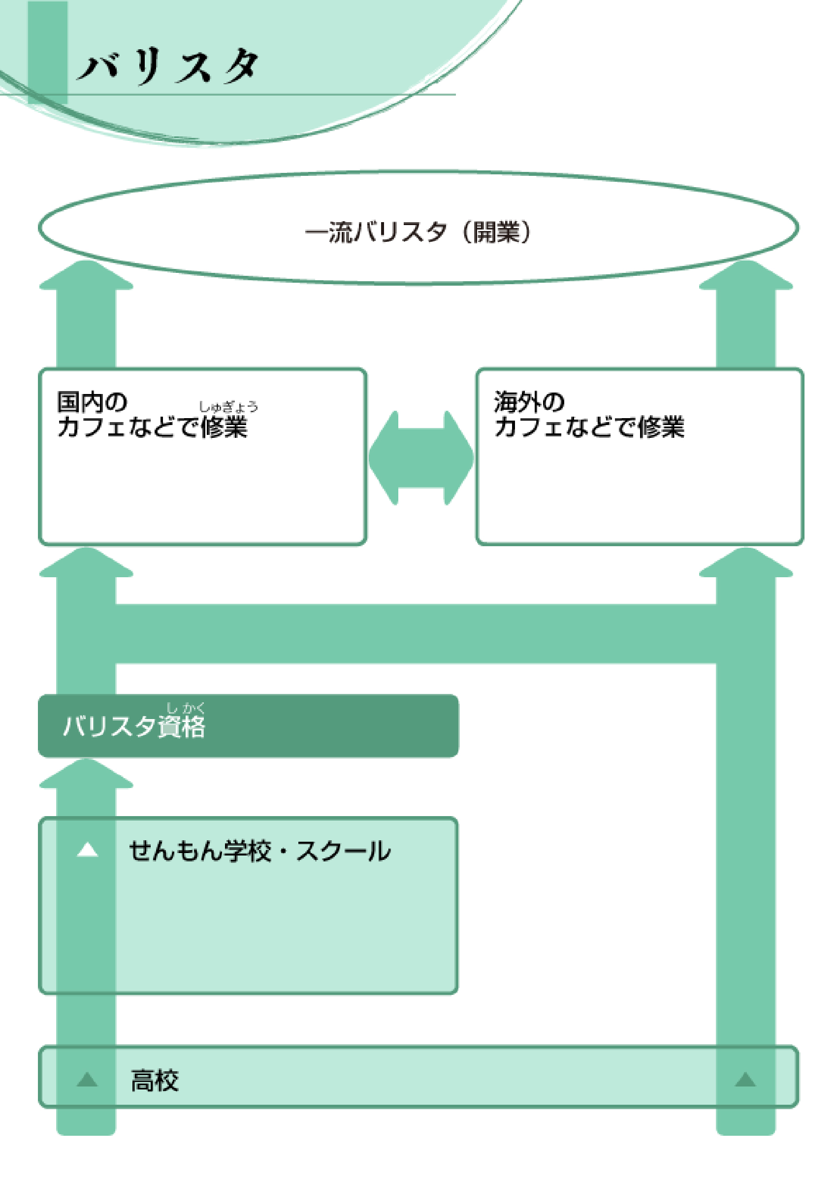 バリスタの仕事につくための主なルートが一目で分かるチャートだよ!