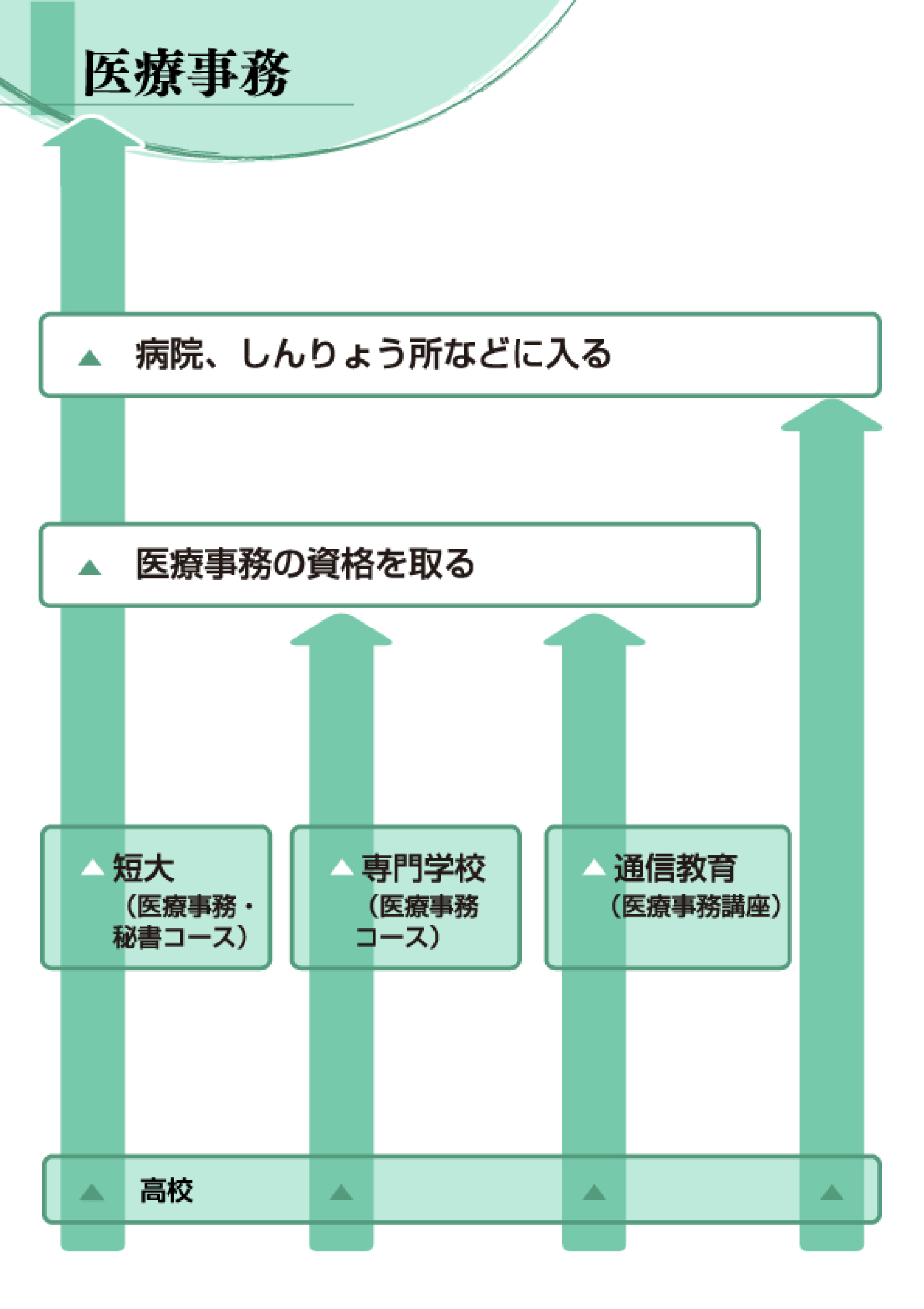 医療事務の仕事につくための主なルートが一目で分かるチャートだよ!