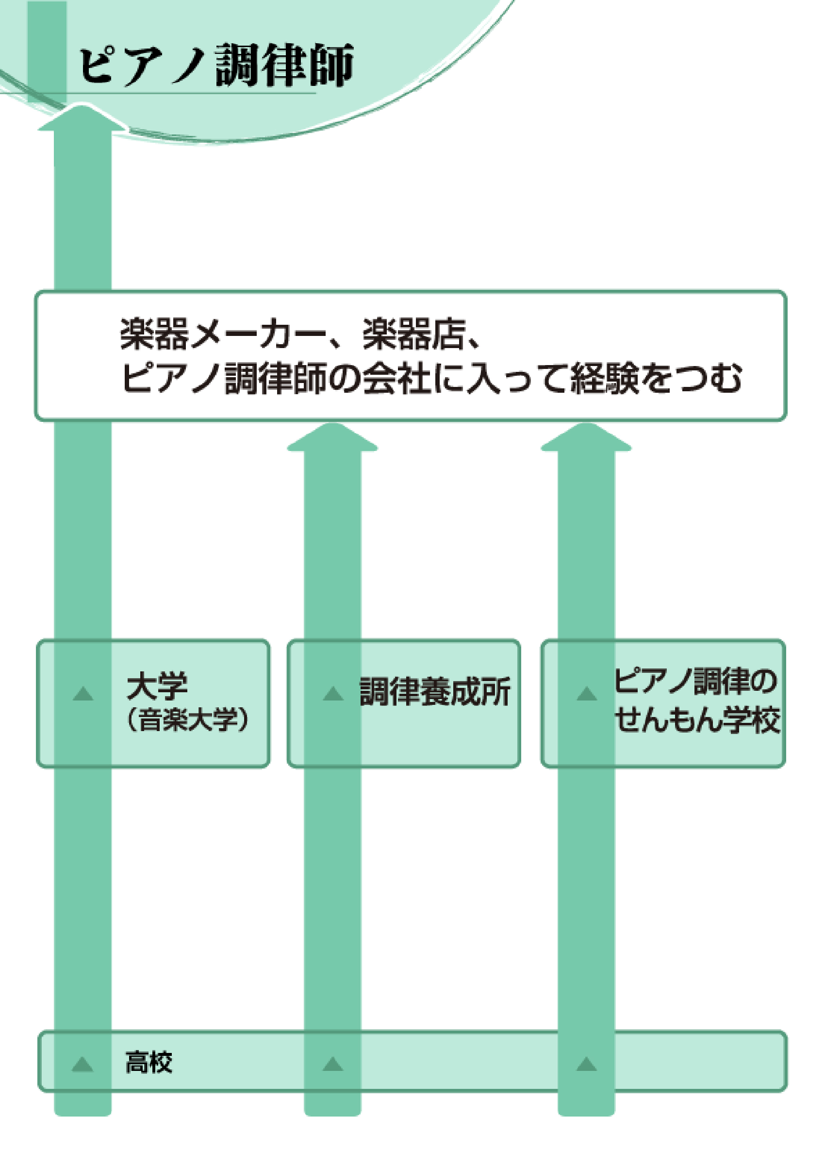 ピアノの調律師の仕事につくための主なルートが一目で分かるチャートだよ!