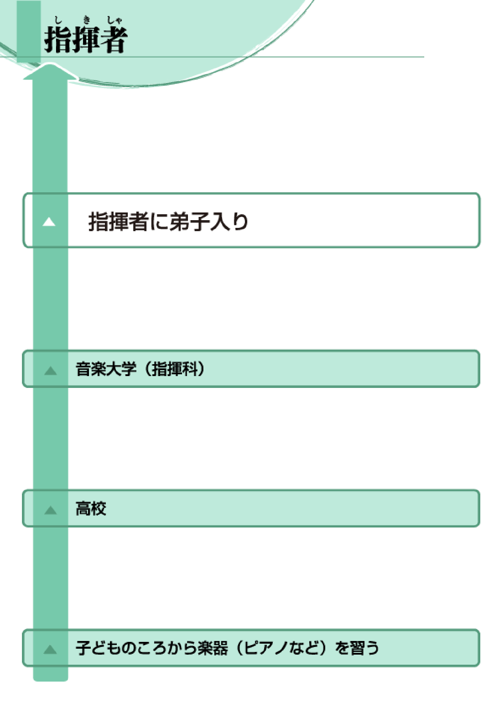指揮者の仕事につくための主なルートが一目で分かるチャートだよ!